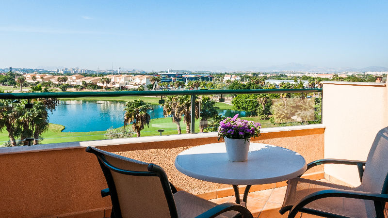 Soliga vyer från ett hotellrum på Hotel Alicante Golf.