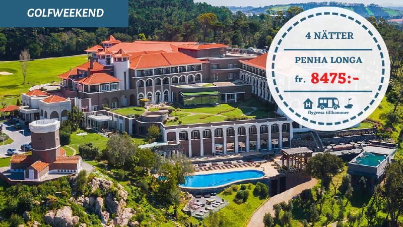 Välkomna till en högklassig golfweekend med boende på Lissabonområdets mest exklusiva golfhotell, Penha Longa. Som i en oas, mellan kustorten Cascais och historiska Sintra vid Sintrarbergets fot, ligger detta lyxhotell med 27 vältrimmade golfhål utanför dörren. Här är det fridfullt, avkopplat och naturskönt. Det är semester.