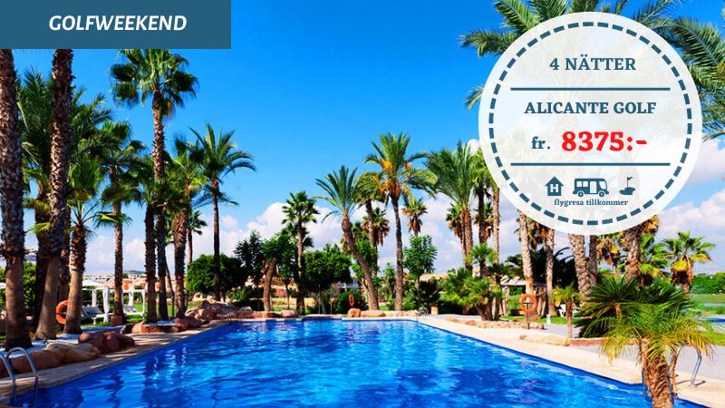 Smidig golfweekend på Costa Blanca. Bo på golfhotell i centrala Alicante med bana direkt utanför dörren och ha närhet till nöjen i Alicantes hamn och till fin strand. Golf på Alicante Golf och Alenda golf club. Alla transfer ingår. Golfweekend till centralt golfhotell i Alicante - Söker...