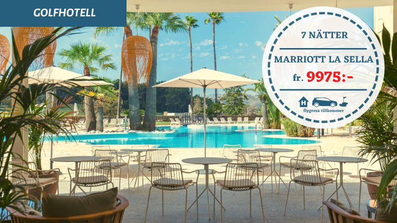 Välkommen till en oförglömlig golfsemester på Marriott La Sella Golf Resort & Spa – din destination för lyx, avkoppling och golfglädje i idylliska norra Costa Blanca. Denna nyligen renoverade femstjärniga oas erbjuder mer än bara en vistelse; den erbjuder en upplevelse. Med 27 spektakulära golfhål designade av den legendariske José María Olazábal direkt utanför dörren, är La Sella ett paradis för golfentusiaster av alla nivåer. Du tar dig enkelt med vår "hyrbil utan krångel"-service direkt från Alicante flygplats till hotellet. TIll härliga kustorten Denia har ni sedan tio minuters färd. Marriott La Sella är inte bara en getaway; det är en resa till det extraordinära, där varje detalj är noga uttänkt för att ge dig den ultimata golfsemestern.