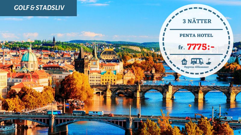 Boka en smidig, fartfylld och upplevelserik golfweekend i underbara Prag. Denna vackra tjeckiska huvudstad bjuder på vacker arkitektur, massor av billig shopping, prisvärda middagar och ett brett och livligt nattliv för den som har energi. Ni bor på förstklassigt och hippt fyrstjärnigt hotell öster om absoluta centrum. Här finns massor av prisvärda restauranger, pubar och butiker runt knuten och till Vaclavtorget och city tar taxiresan tio minuter eller tunnelbaneresan ett par minuter. Det fyrstjärniga hotellet erbjuder moderna rum för en god natts sömn och en bra frukost som grund för dagens aktiviteter. För er bekvämlighet ingår flygplatstransfer och alla golftransfer med egen chaufför så luta er tillbaka och njut av semestern.